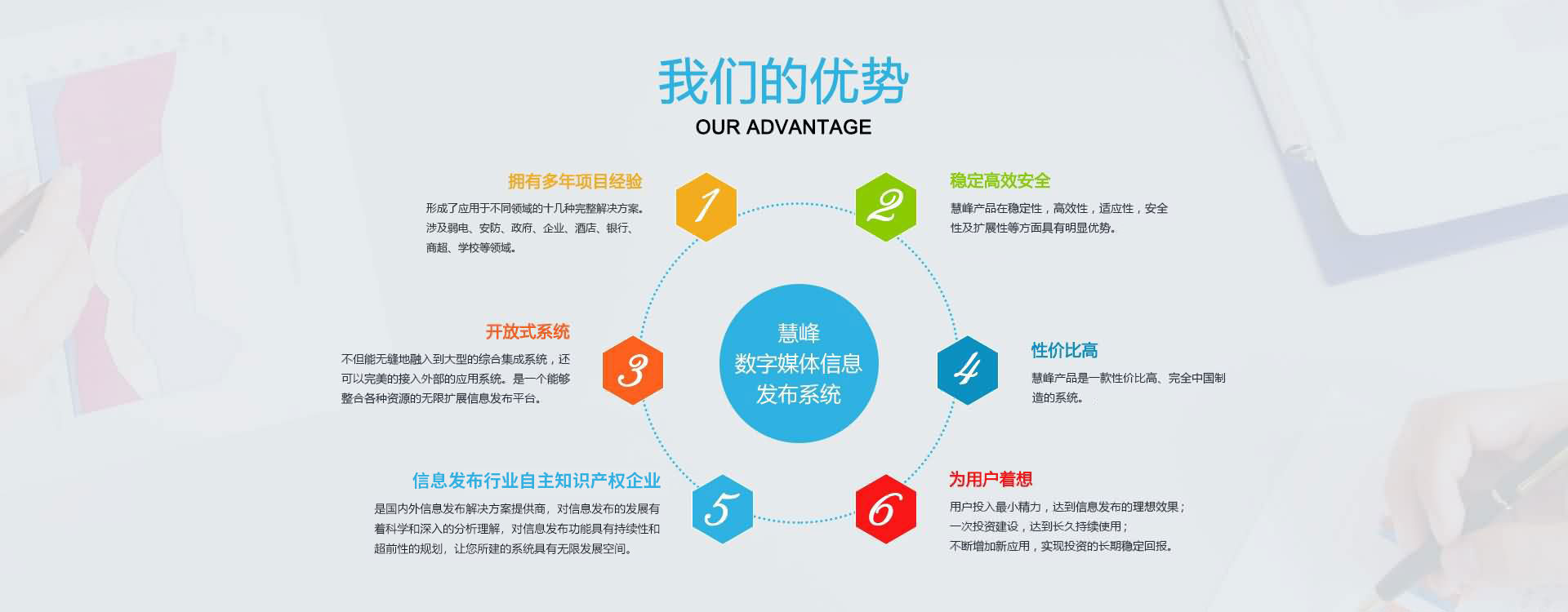 公司本著互惠互利,誠實(shí)信用的原則,真誠面對用戶,并愿與社會各界展開廣泛的合作。 公司現(xiàn)已是國內(nèi)的數(shù)字媒體信息發(fā)布系統(tǒng)解決方案提供商,產(chǎn)品涉及大中型企業(yè)、商業(yè)地產(chǎn)、各級黨政機(jī)關(guān)、軍隊、司法、信息通信、金融、醫(yī)療、教育、能源交通、公用事業(yè)領(lǐng)域。